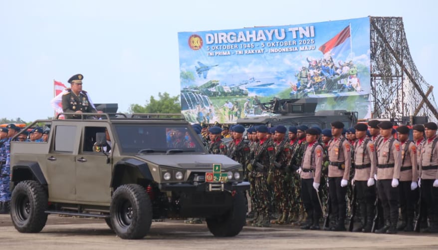 Merauke – Upacara peringatan Hari Ulang Tahun (HUT) Tentara Nasional Indonesia (TNI) ke-80 berlangsung khidmat di Base OPS J.A. Dimara Merauke, Minggu (5/10/2025) pagi.