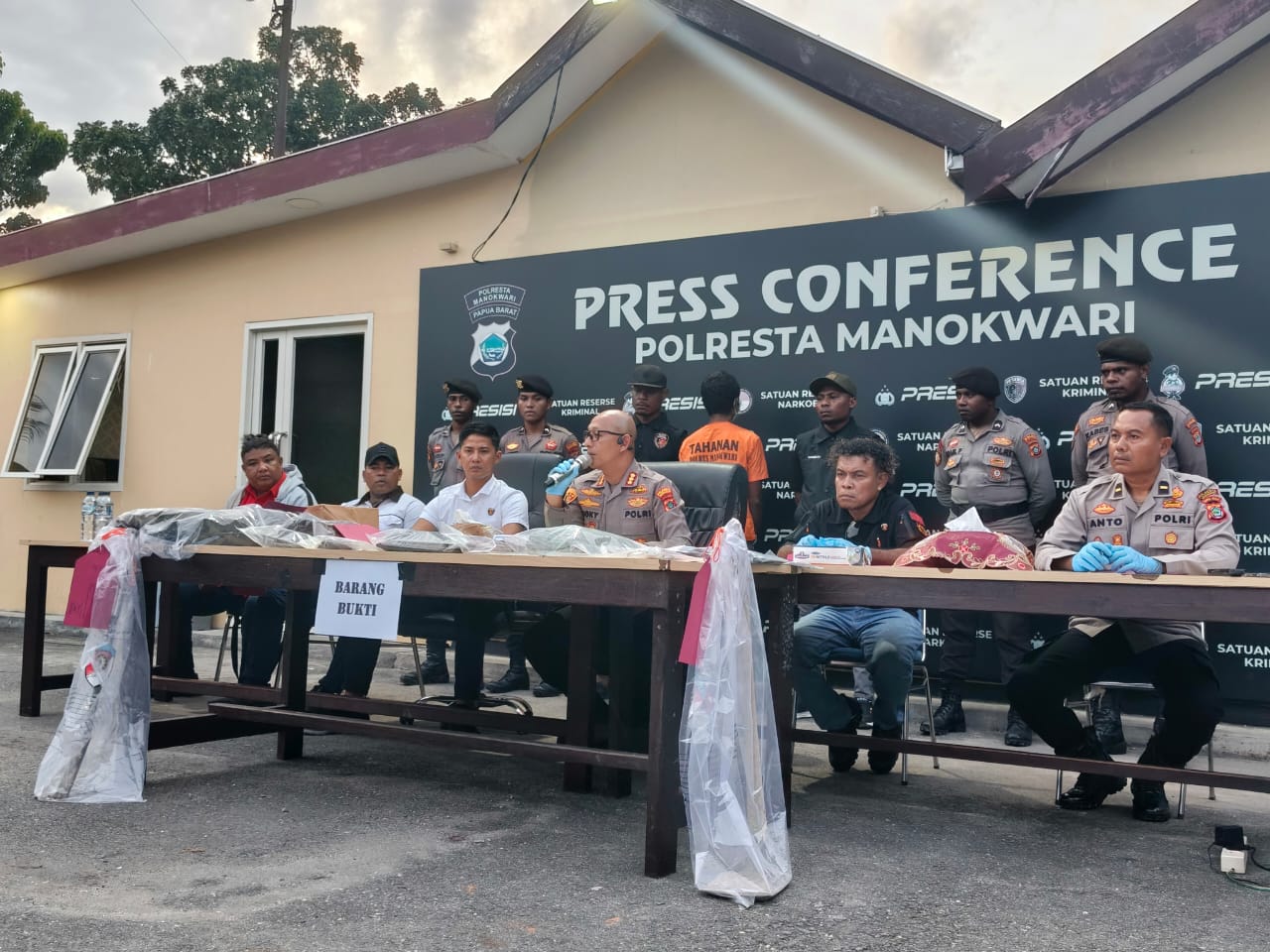 Kapolresta Manokwari Kombes Pol Ongky Isgunawan, SIK menjelaskan kronologi kasus ini dalam konferensi pers di Mapolresta Manokwari, Rabu (12/11/2025).