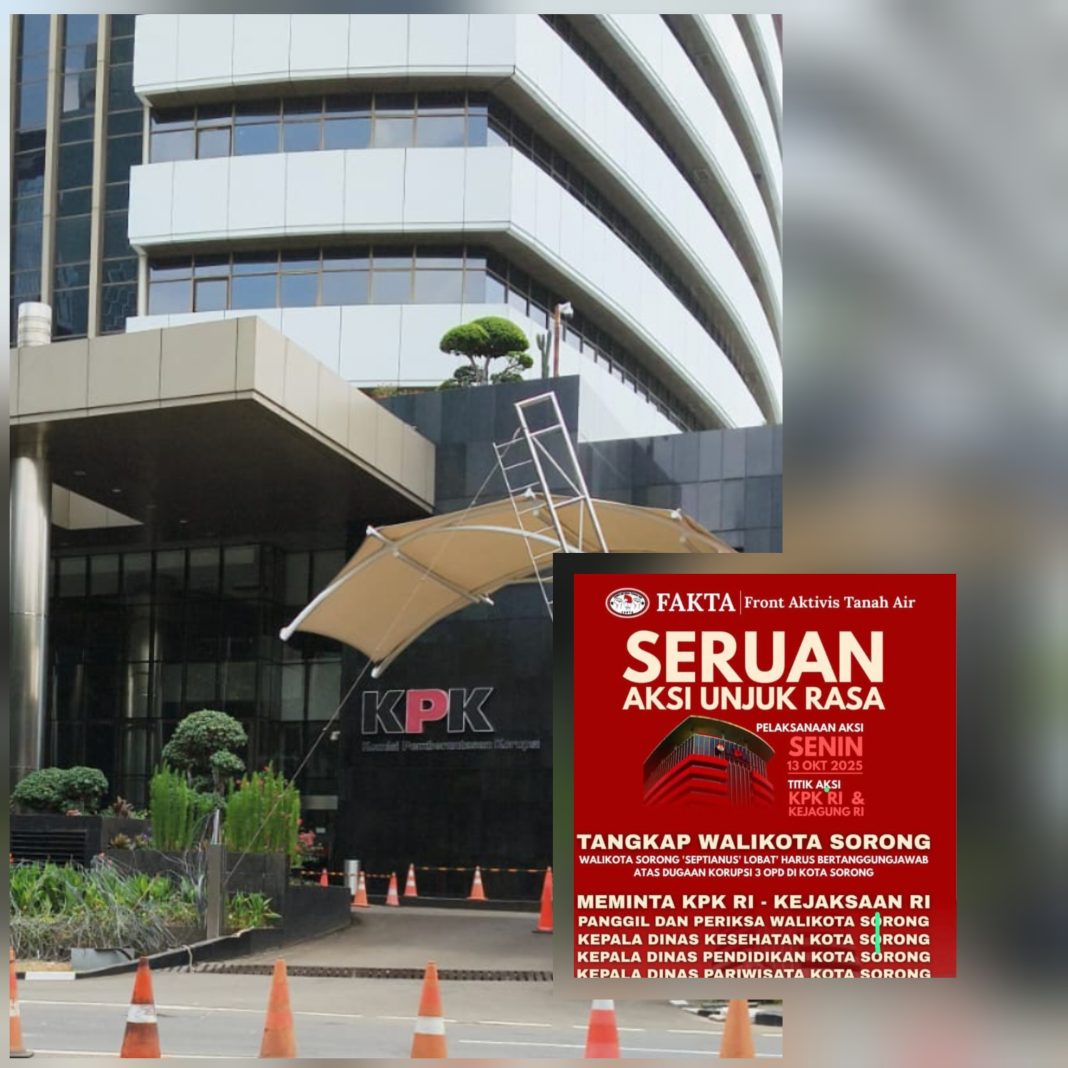 Jakarta, – Sebuah poster seruan aksi unjuk rasa yang mengatasnamakan Front Aktivis Tanah Air (FAKTA) beredar luas di media sosial. Poster tersebut berisi seruan untuk melakukan aksi pada Senin, 13 Oktober 2025, di dua titik utama, yakni Gedung Komisi Pemberantasan Korupsi (KPK RI) dan Kejaksaan Agung RI.